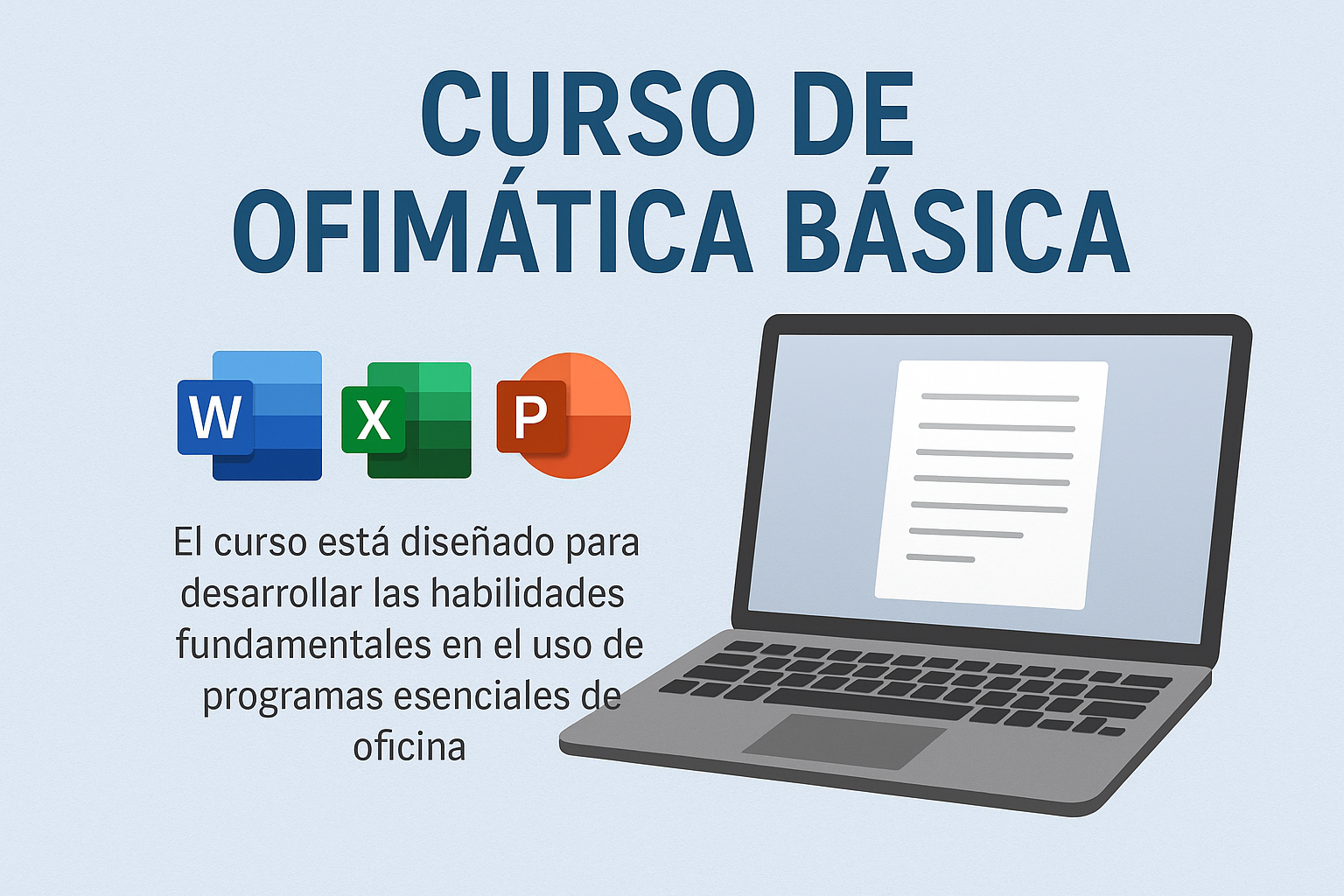 El Curso de Ofimática Básica está diseñado para desarrollar las habilidades fundamentales en el uso de programas esenciales de oficina, como Microsoft Word, Excel y PowerPoint. A través de actividades prácticas y contenidos sencillos, el estudiante aprenderá a crear documentos, hojas de cálculo y presentaciones profesionales, así como a utilizar herramientas digitales que facilitan el trabajo académico y laboral.